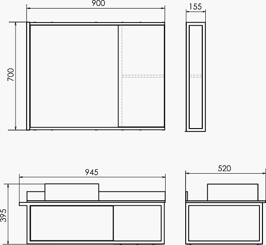 - Материал корпуса/фасада: ЛДСП, металл / ЛДСП, зеркало.