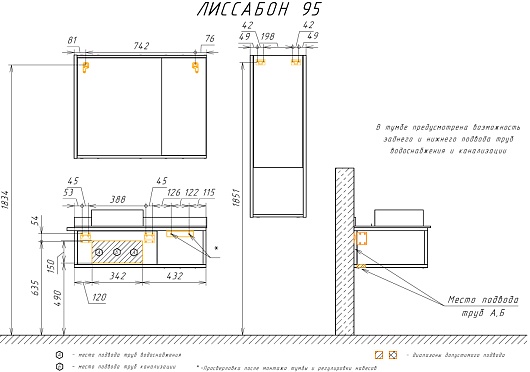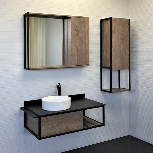 В комплекте: тумба, раковина, столешница, зеркальный шкаф, крепеж.