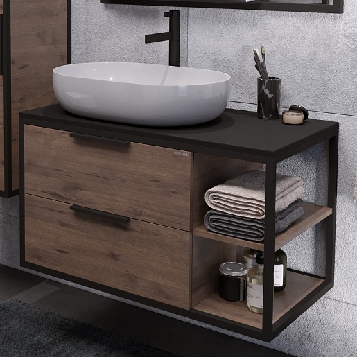 Тумба под раковину Лофт 90 подвесная веллингтон/черный