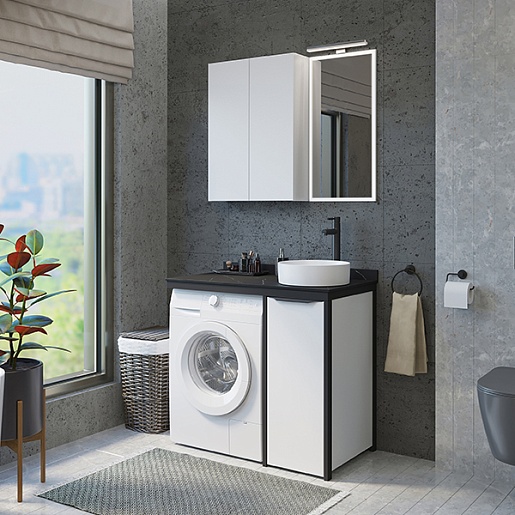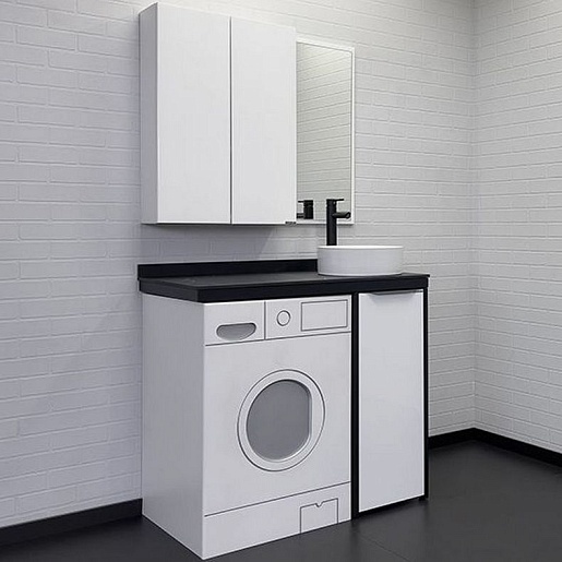 Тумба с раковиной Лозанна 100 под стиральную машину белая глянцевая