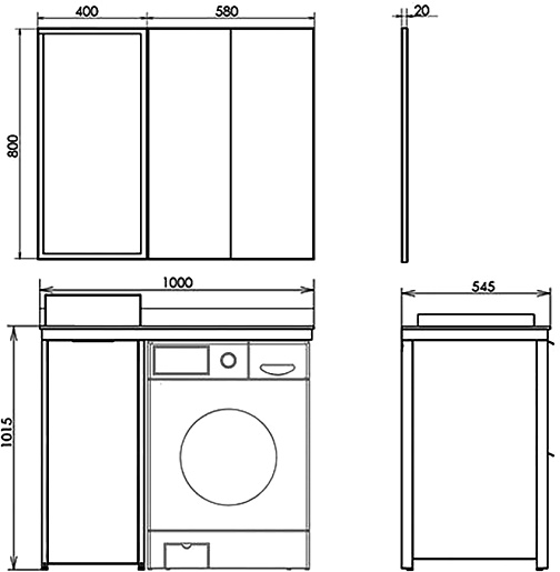 Подвесная тумба с раковиной Comforty Лозанна 100 под стиральную машину - арт. 00-00013800CF.