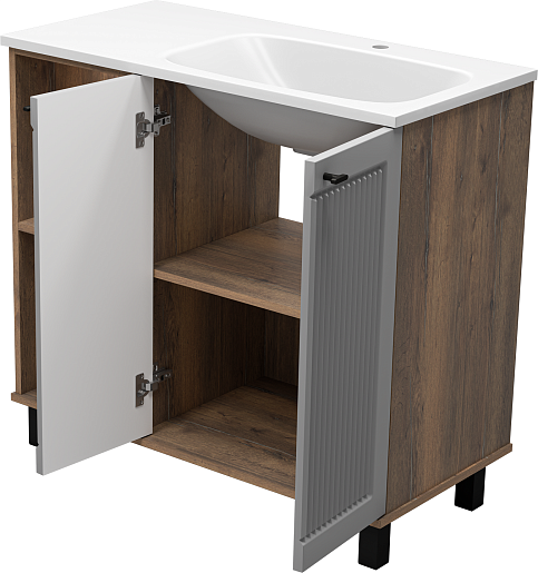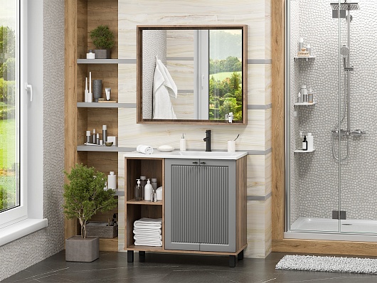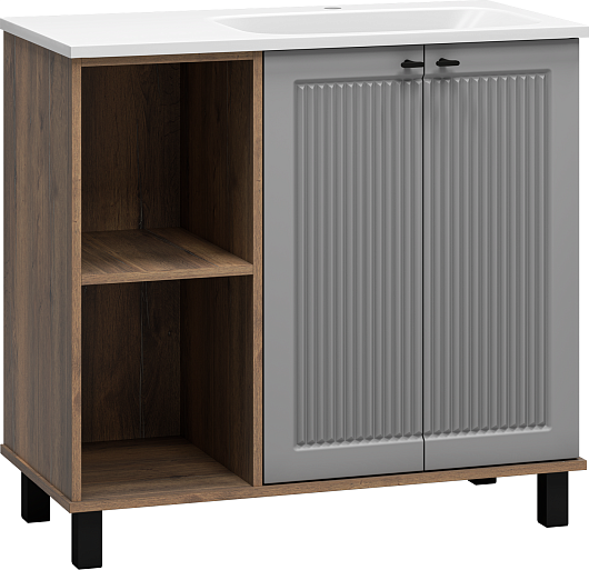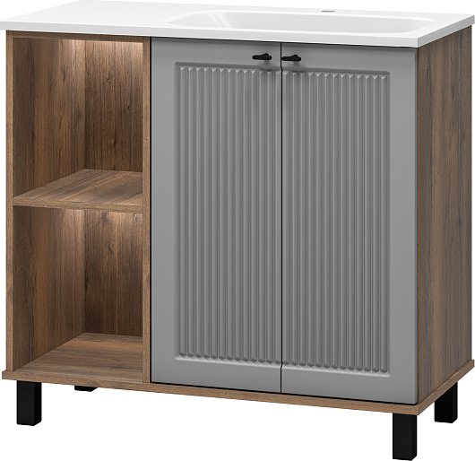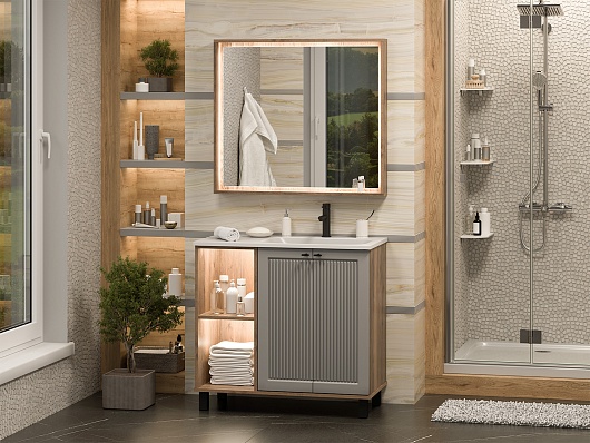 Тумба под раковину Lumus 90 R с подсветкой серая/дуб галифакс олово