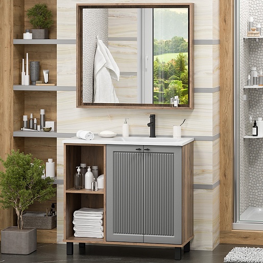 В комплекте: тумба, раковина, зеркало, крепеж.