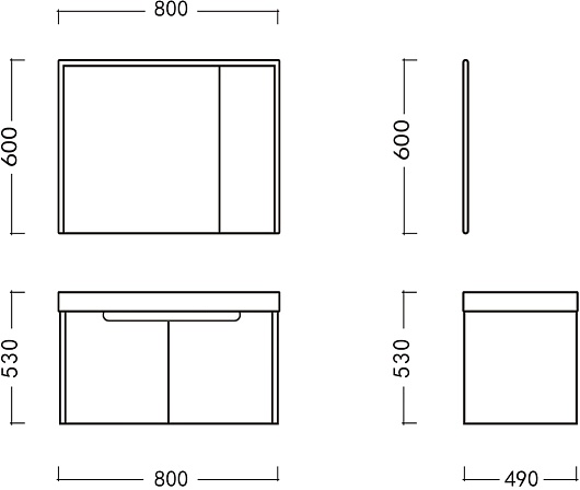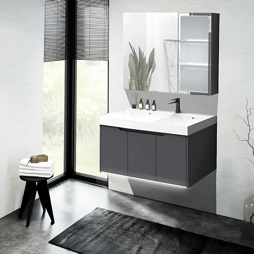 В комплекте: тумба, раковина, донный клапан (2 шт.), зеркальный шкаф, сифон с фильтром-затвором (2 шт.), У-образный сливной шланг, вилка для подключения подсветки, крепеж.