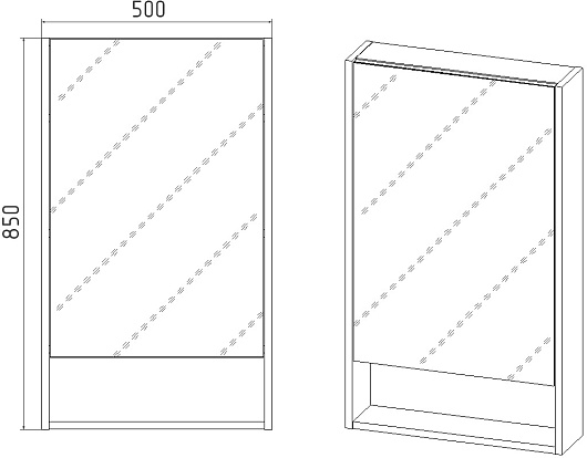 - Размер (ШxГxВ): 500x135x850 мм.