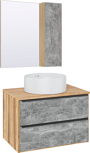 В комплекте: тумба, раковина, зеркальный шкаф, крепеж.