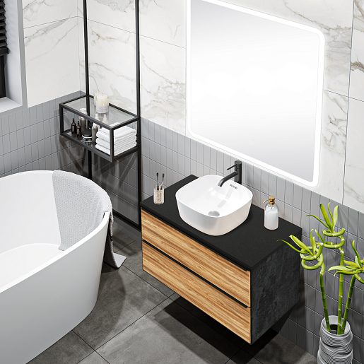 Тумба под раковину Мальта 85 подвесная дуб/черная