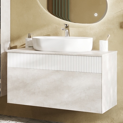 Акватон Мебель для ванной Марбл 100 Одри Round подвесная слэйт/белая матовая