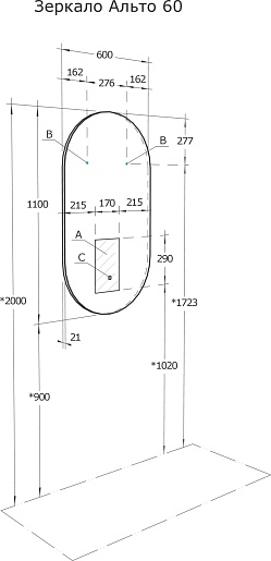 Зеркало Акватон Альто 60 - арт. 1A256502A1010.