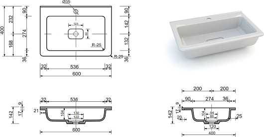 Раковина мебельная Марелла Люкс 60