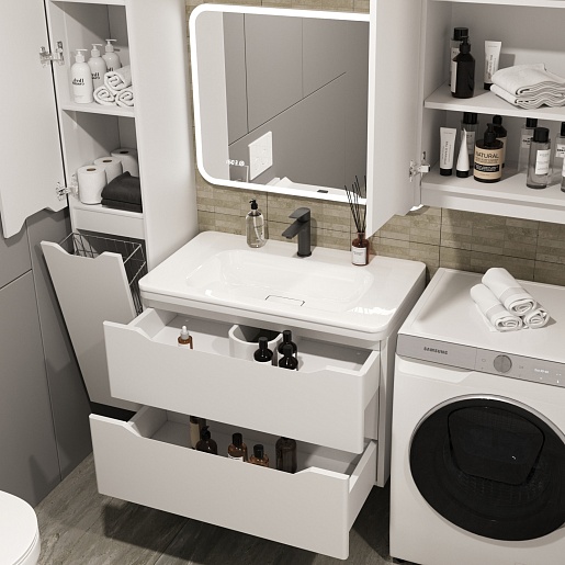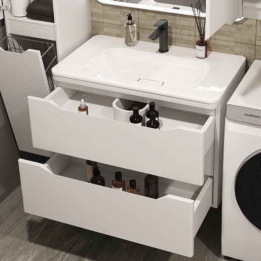Тумба под раковину Марелла 80 Люкс Plus антискрейтч подвесная белая матовая