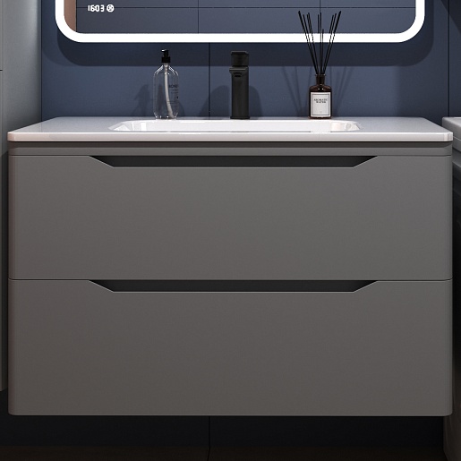Тумба под раковину Марелла 90 Люкс Plus антискрейтч подвесная серая матовая