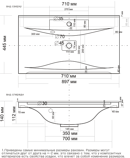 - Раковина из литьевого мрамора со слив-переливом.
