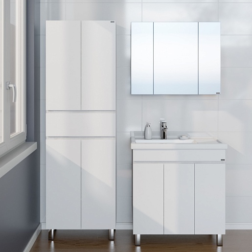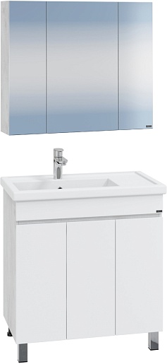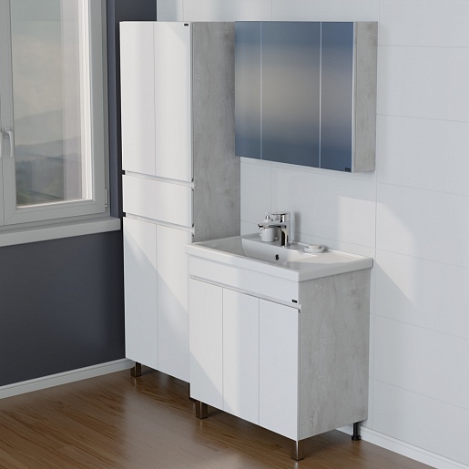 В комплекте: тумба, раковина, зеркальный шкаф, ножка (4 шт.).