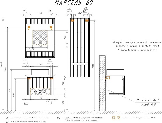 Подвесная тумба с раковиной Comforty Марсель 60 - арт. 00-00012272CF.