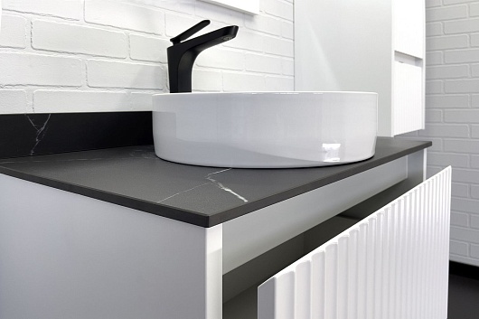 - Столешница из керамогранита в цвете Калакатта Блэк.