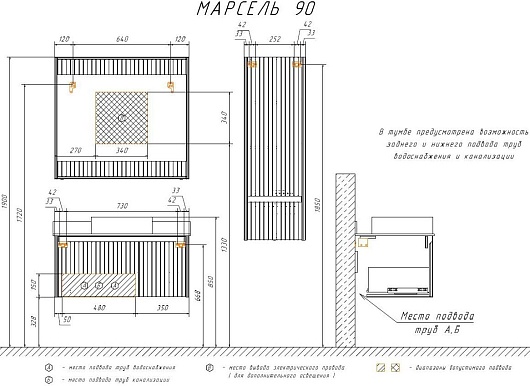 В комплекте: тумба, раковина, столешница, зеркало, крепеж.