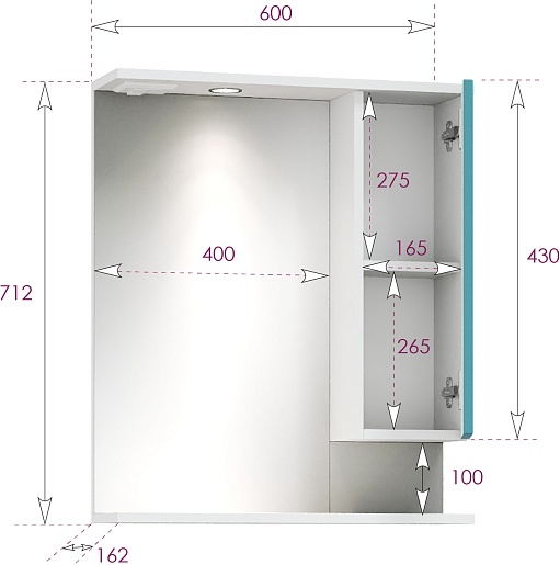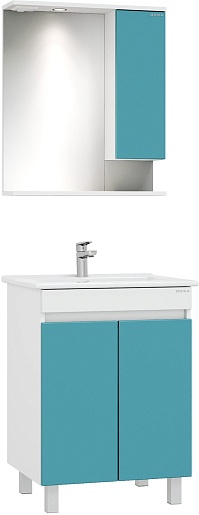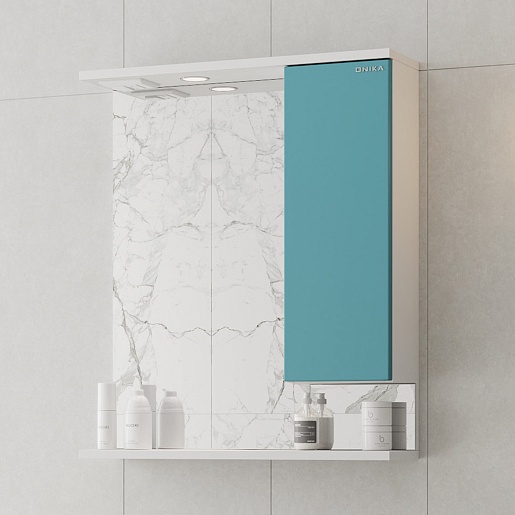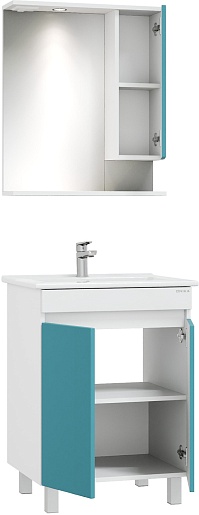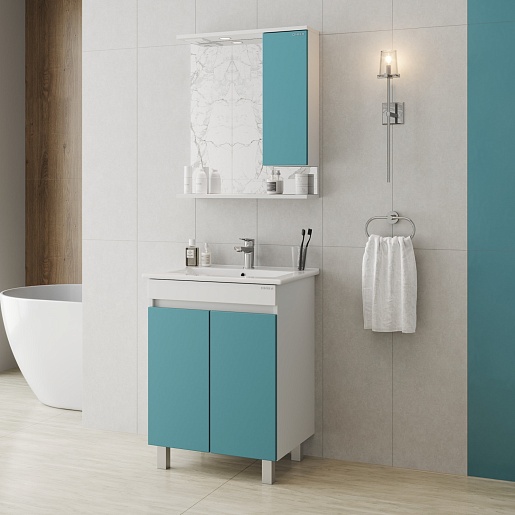 Зеркальный шкаф Марви 60 R белый/бирюзовый