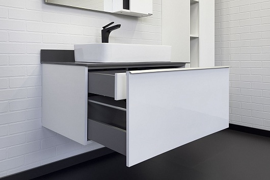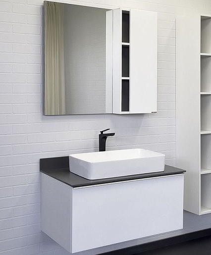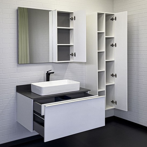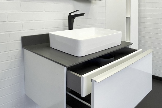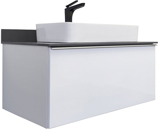 Тумба с раковиной Милан 90 с графитовой столешницей подвесная белая