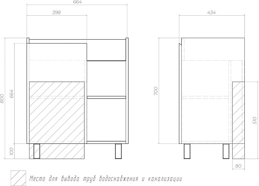 Напольная тумба с раковиной Vigo Milos 700-1-0 - арт. 317 белый / S-UM-COM70/1-w VIGO.