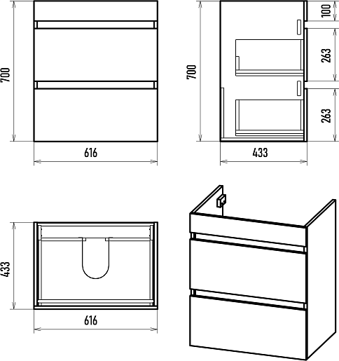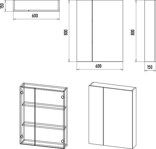 - Размер (ШxВxГ): 600x800x150 мм.