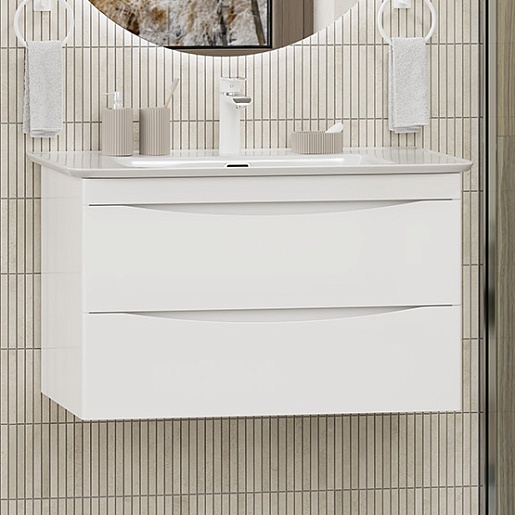 Подвесная тумба с раковиной Misty Мираж 80 - арт. П-Мир-01080-011П2Я / RCW-140280WH.