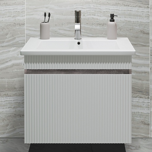 Тумба под раковину Модена 65 подвесная белая/железный камень