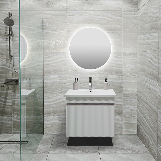 Runo Мебель для ванной Модена 65 подвесная белая/железный камень с зеркалом Руан 65