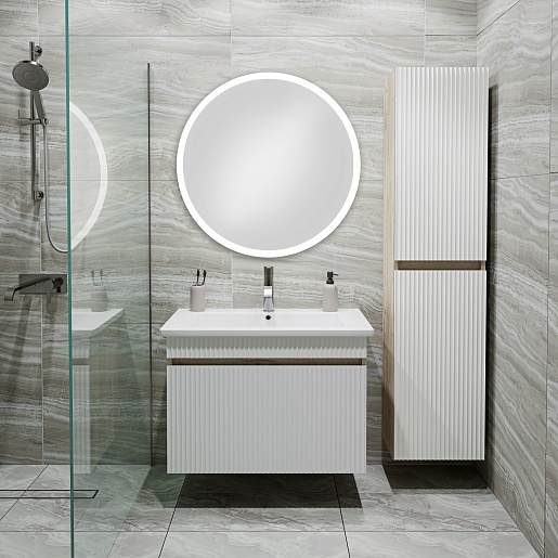 Runo Мебель для ванной Модена 75 подвесная белая/дуб крафт с зеркалом Руан 77