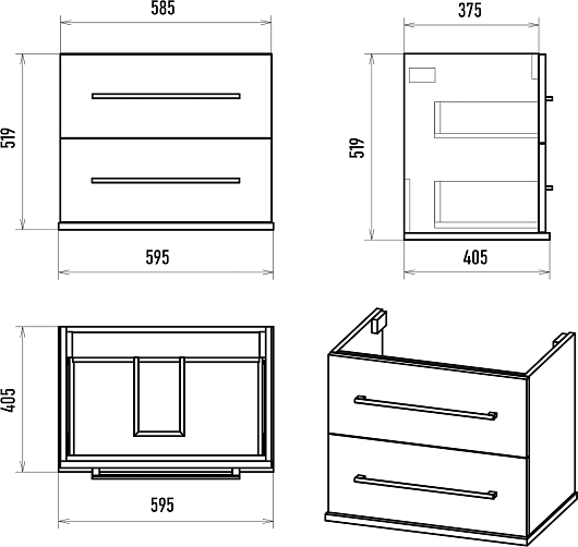 Подвесная тумба с раковиной Misty Модерн 60 - арт. П-Мод09060-011Пр / Р-Евв14060-Д.