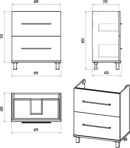 - 2 выдвижных ящика.