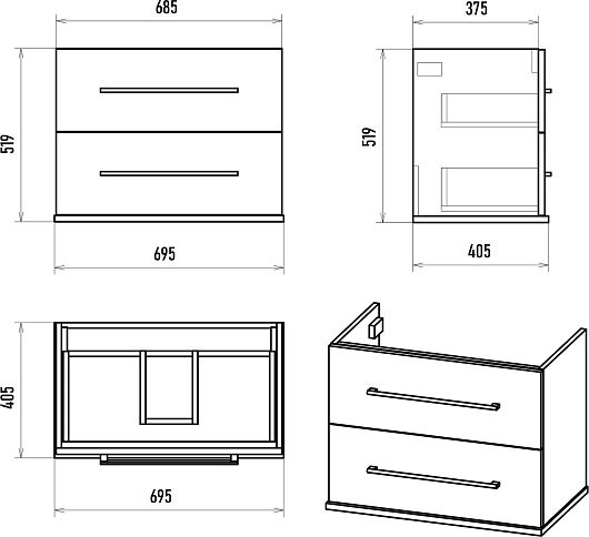- 2 выдвижных ящика.