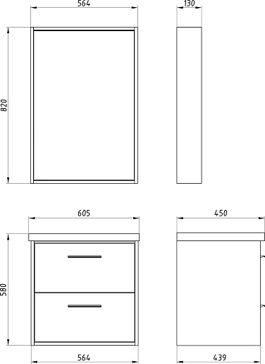- Размер (ШxВxГ): 564 x 820 x 130 см.