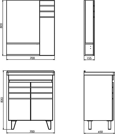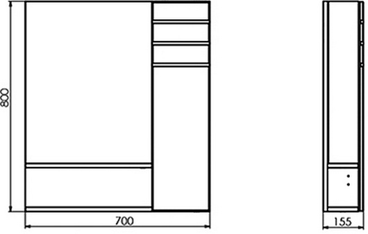 - Размер (ШxВxГ): 700x800x155 мм.