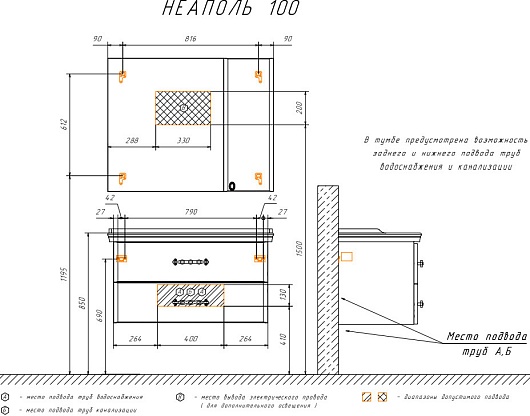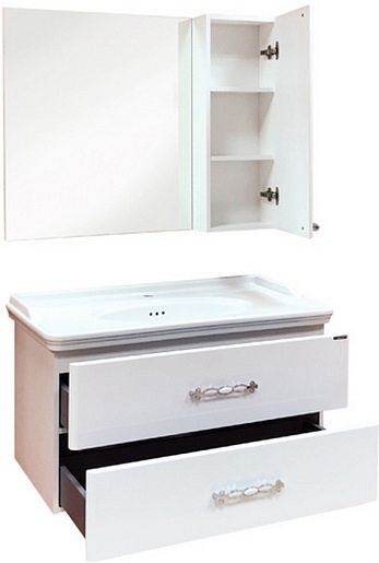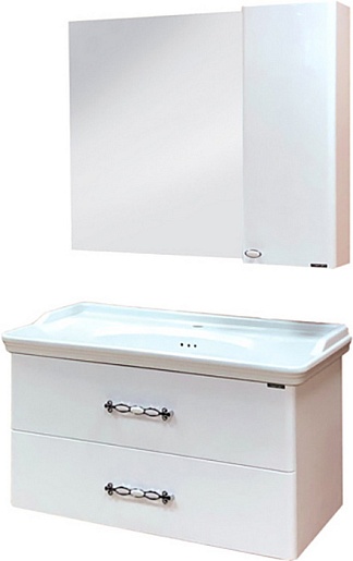В комплекте: тумба, раковина, зеркальный шкаф, крепеж.