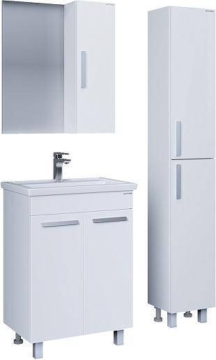 В комплекте: тумба, раковина, зеркальный шкаф, крепеж, ножка (4 шт.).