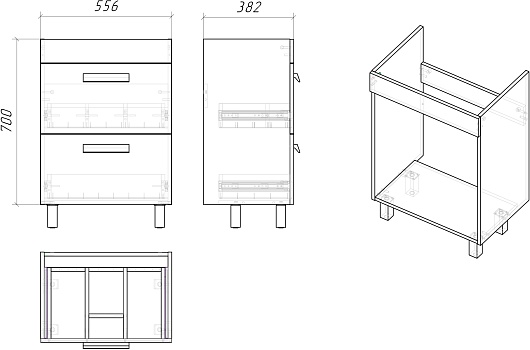 - 2 выдвижных ящика.