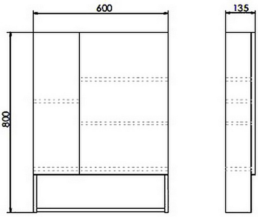 - Размер (ШxВxГ): 600x800x135 мм.
