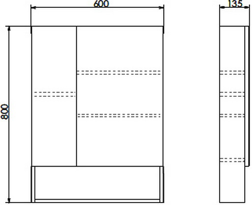 - Размер (ШxВxГ): 600x800x135 мм.