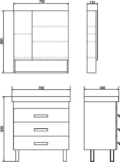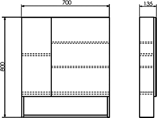 - Размер (ШxВxГ): 700x800x135 мм.