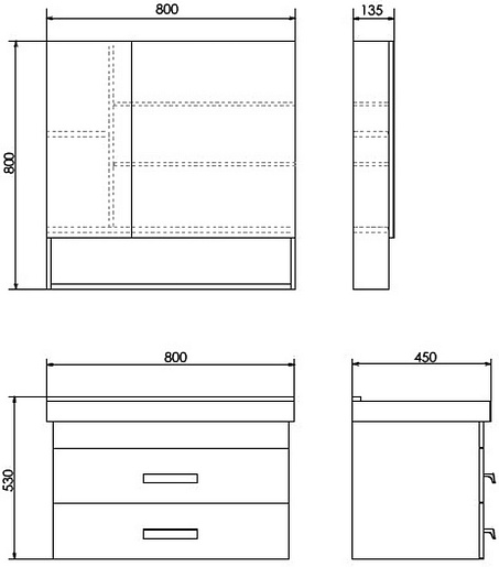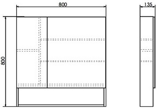 - Размер (ШxВxГ): 800x800x135 мм.