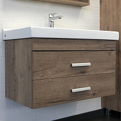 Тумба с раковиной Никосия 80П подвесная дуб темный
