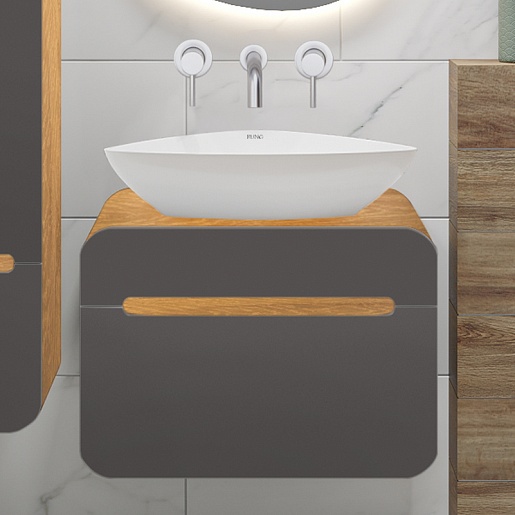 Тумба под раковину Ницца 60 подвесная графит/дуб натуральный