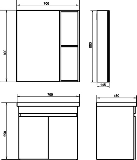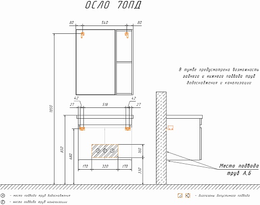 В комплекте: тумба, раковина, зеркальный шкаф, крепеж.