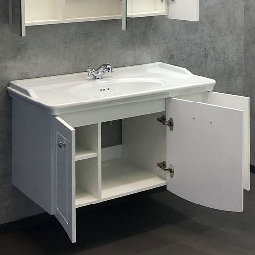В комплекте: тумба, раковина, зеркальный шкаф, крепеж.
