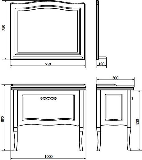 - Размер (ШxВxГ): 950x750x120 мм.