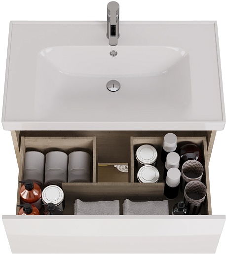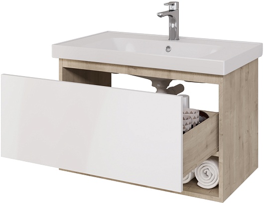 Тумба под раковину Perfecto 90 подвесная белая/дуб эврика