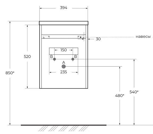 - База под раковину PIETRA MINI-400-1A-SO-BL-L подвесная с одной дверкой, левостороннее исполнение.