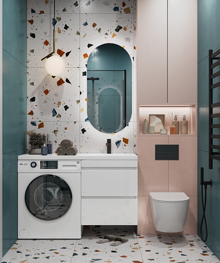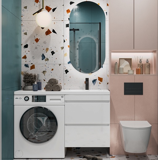 - Раковина из литьевого мрамора с крылом с левой стороны под установку стиральной машины.