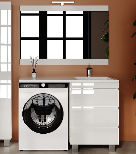 Style Line Мебель для ванной под стиральную машину Леон 120 R 3 ящика Люкс Plus белая